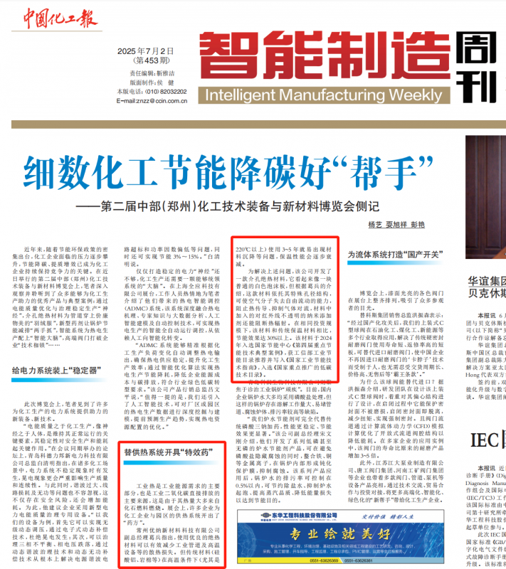 6月17-19日,優(yōu)納新材受邀參加2025中部(鄭州)化工產(chǎn)業(yè)高質(zhì)量發(fā)展大會(huì)及新材料、高端裝備展覽會(huì)。展會(huì)上,優(yōu)納新材受到眾多化工行業(yè)客戶的咨詢及專業(yè)人士的贊譽(yù),并接受了中國化工報(bào)等權(quán)威媒體的專訪,充分展現(xiàn)出介孔絕熱材料在節(jié)能降碳方面的優(yōu)勢(shì)。作為中西部化工行業(yè)年度風(fēng)向標(biāo),本屆展會(huì)以“總結(jié)‘十四五’,展望‘十五五’——以山河四省一區(qū)戰(zhàn)略推進(jìn)化工高質(zhì)量發(fā)展新局面”為主題,匯聚全國化工產(chǎn)業(yè)鏈優(yōu)秀資源,打造了技術(shù)交流、貿(mào)易合作與投資對(duì)接的國家級(jí)平臺(tái)。優(yōu)納新材攜介孔絕熱相關(guān)產(chǎn)品盛裝參加本次展會(huì),作為國家多個(gè)部委共同推薦的絕熱新材料,優(yōu)納新材展位現(xiàn)場(chǎng)來訪的客人絡(luò)繹不絕,通過公司工作人員的講解和互相交流,眾多客人當(dāng)場(chǎng)表達(dá)了合作意愿。展會(huì)期間,優(yōu)納新材副總經(jīng)理葛兵先生受邀在“新技術(shù)、新裝備、新材料”論壇上,以“經(jīng)濟(jì)節(jié)能的介孔絕熱材料”為主題向大家詳細(xì)分享了公司技術(shù)研發(fā)、產(chǎn)品優(yōu)勢(shì)、解決方案、應(yīng)用案例等相關(guān)情況,并接受了中國化工報(bào)等行業(yè)權(quán)威媒體專訪。介孔絕熱材料節(jié)約能源、節(jié)省空間、節(jié)省輔材、維護(hù)成本低等諸多優(yōu)勢(shì)吸引了現(xiàn)場(chǎng)專業(yè)人士的熱烈討論。優(yōu)納新材致力于介孔材料隔熱保溫新材料開發(fā)應(yīng)用,為國際首創(chuàng),技術(shù)成果被鑒定為國際領(lǐng)先,在投資持平時(shí),和傳統(tǒng)材料相比可以達(dá)到30%以上的節(jié)能效果。優(yōu)納新材的介孔絕熱技術(shù)于2024年榮獲國家發(fā)改委國家節(jié)能中心《第四屆重點(diǎn)節(jié)能技術(shù)典型案例》,獲得工信部工業(yè)節(jié)能目錄推薦并寫入《國家工業(yè)節(jié)能技術(shù)指南》,入選國家生態(tài)環(huán)境部等五部委聯(lián)合印發(fā)的《國家重點(diǎn)推廣的低碳技術(shù)目錄》。同時(shí),優(yōu)納新材于2024年8月被美國制造業(yè)洞察雜志評(píng)為“亞太地區(qū)優(yōu)秀新材料公司”。未來,優(yōu)納新材將繼續(xù)秉持綠色低碳的發(fā)展理念,加大在節(jié)能減排、技術(shù)創(chuàng)新等方面的投入,為絕熱行業(yè)的發(fā)展注入更多新的活力,為實(shí)現(xiàn)全球碳中和目標(biāo)貢獻(xiàn)更多的智慧和力量,書寫更加輝煌的篇章!